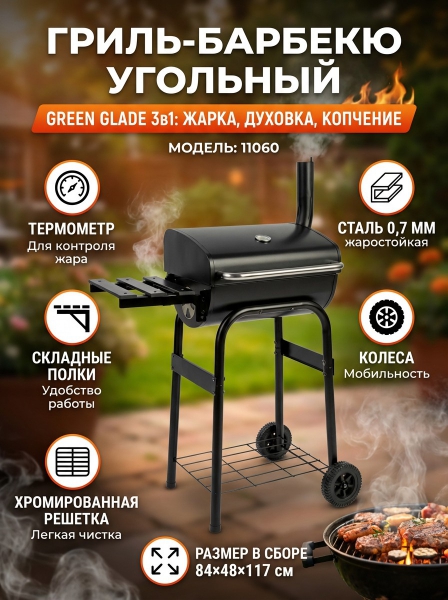 Гриль-барбекю Green Glade 11060 - ДоставкаДоставка по Санкт-Петербургу: бесплатно, 2-3 дня Доставка по России: стоимость уточняйте у оператора. Гриль-барбекю Green Glade 11060 - Отзывы0.0