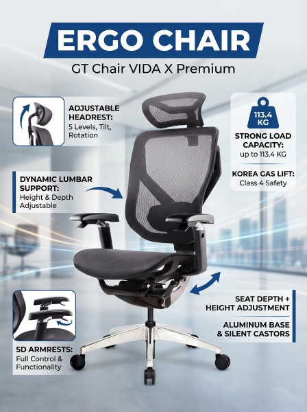 Премиум эргономичное кресло GT Chair VIDA X - Преимущества