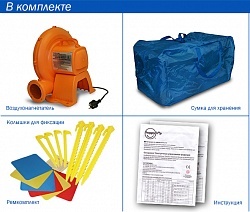 Насос батута высокого качества, высокоэффективен, безопасен при использовании и безвреден для окружающей среды. Насос можно использовать при температуре от -15 до + 40 °C. Помимо этого, он оснащен устройством защиты. При возникновении в насосе короткого замыкания или при прочих возникших проблемах при его эксплуатации, он немедленно выключается, тем самым обеспечивает безопасность пользователю надувного батута. Насос отвечает экологическим стандартам ЕС, а также имеет сертификат безопасности GS.