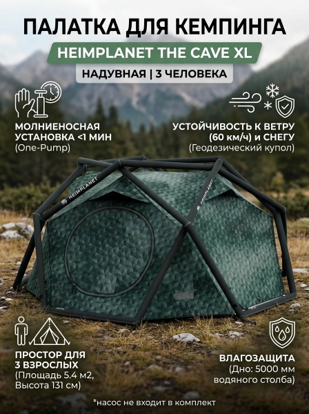 Палатка надувная кемпинговая Heimplanet The Сave XL cairo camo - ДоставкаДоставка по Санкт-Петербургу: бесплатно, 2-3 дня Доставка по России: стоимость уточняйте у оператора. Палатка надувная кемпинговая Heimplanet The Сave XL cairo camo - Отзывы0.0