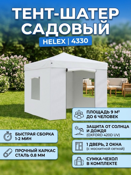 Тент-шатер садовый Helex 3x3х3 м - ДоставкаДоставка по Санкт-Петербургу: бесплатно, 2-3 дня Доставка по России: стоимость уточняйте у оператора. Тент-шатер садовый Helex 3x3х3 м - Отзывы0.0