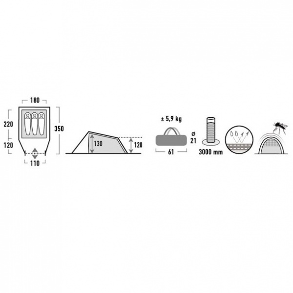 Кемпинговая палатка серая HIGH PEAK Ascoli 3 - ОписаниеКемпинговая 3-ох местная палатка для длительного отдыха на природе.