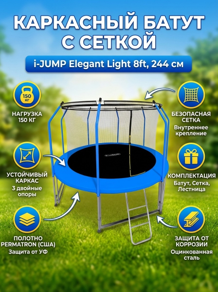 Батут с внутренней сеткой и лестницей I-Jump Elegant Light 8ft blue - Преимущества