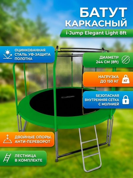 Батут с внутренней сеткой и лестницей I-Jump Elegant Light 8ft green - Обзор ТОП-10 лучших батутов 2025 🏆: Обзор и рейтинг