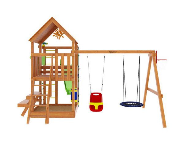 Катание с горки, подтягивания на турнике, лазание по верёвочной лестнице, и скалодрому, наличие качели и боксёрской груши укрепляют сердечно-сосудистую систему и мышцы, развивают координацию движений и вестибулярный аппарат. Игры с песком оказывают терапевтический эффект на детей любого возраста. Интересный дизайн конструкции, напоминающий домик станет рождением новых идей для игр. Например, «Кто-кто в теремочке живёт», вообразить себя юнгой, пожарным или принцем, спасающим принцессу от дракона. Удобный столик со скамейкой будет идеальным местом для чаепития и настольных игр.