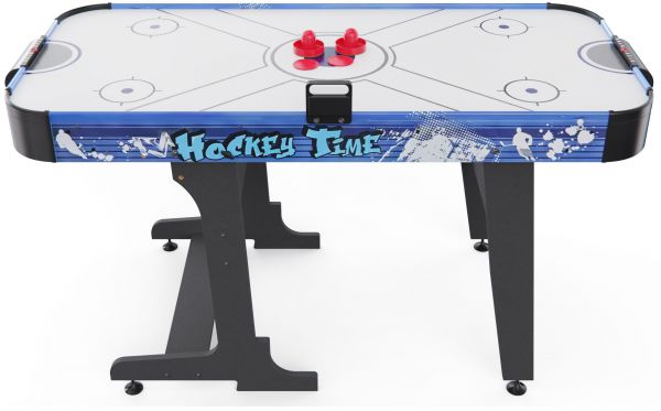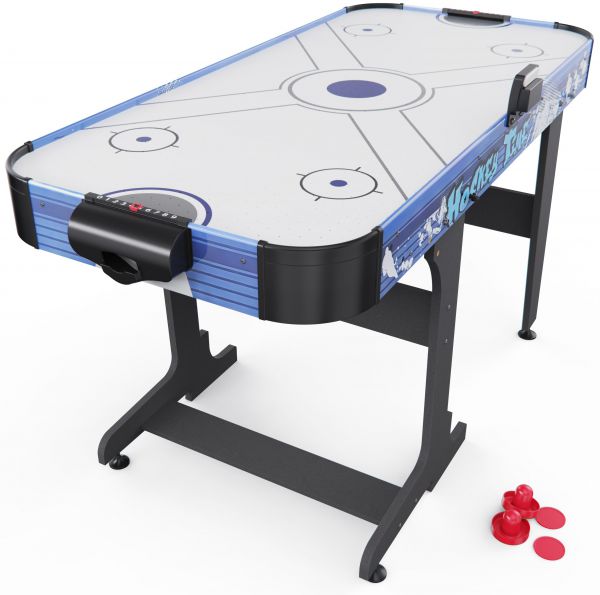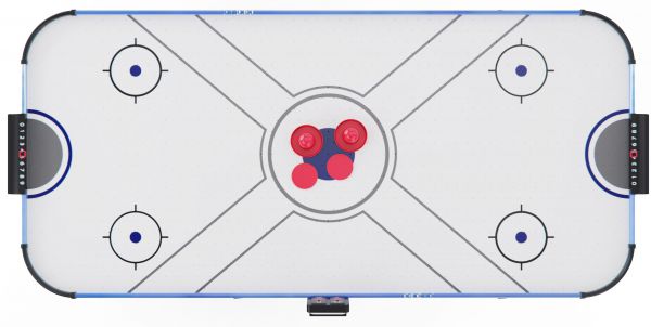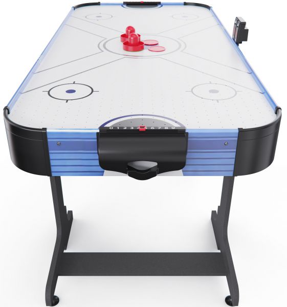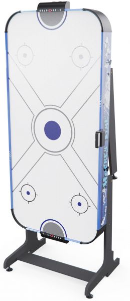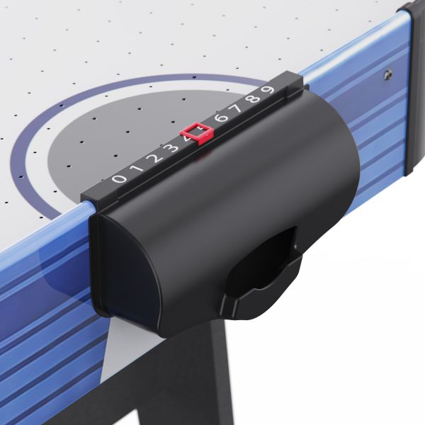 Встроенный вентилятор на 220В создает воздушную подушку, по которой шайба скользит практически без трения — именно так достигается эффект настоящего аэрохоккея. Для удобства игроков стол оснащён электронным и механическим счётчиком очков, что позволяет отслеживать результаты в реальном времени.