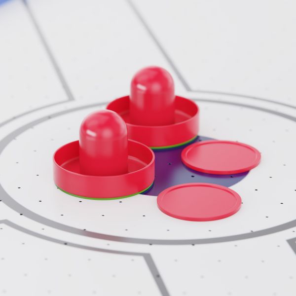 Игровое поле стола выполнено из качественного МДФ с гладким покрытием, что гарантирует гладкую поверхность для легкого скольжения шайбы. Толщина поля 3 мм, бортики высотой 15 мм и толщиной 12 мм защищают шайбу от вылета, обеспечивая комфорт и безопасность игры.