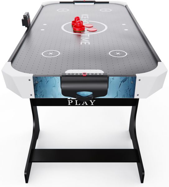 Встроенный вентилятор на 220В создает воздушную подушку, по которой шайба скользит практически без трения — именно так достигается эффект настоящего аэрохоккея. Электронный счетчик ведет учет забитых шайб, избавляя игроков от споров и добавляя соревнованию профессиональный дух. Размер стола — 135,5 х 67,6 х 81 см — позволяет разместить его даже в небольшой квартире, а прочные опорные ножки обеспечивают устойчивость во время динамичной игры.