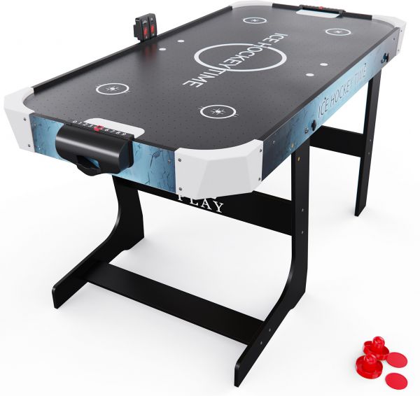 В комплект входят 2 биты диаметром 65 мм и 2 шайбы диаметром 55 мм — все, что нужно для увлекательной игры сразу после сборки. Высота ножек 74 см делает стол удобным для игроков разного возраста. Складная конструкция стола позволяет легко убирать его после игры, а компактные размеры делают удобным хранение даже в ограниченном пространстве.