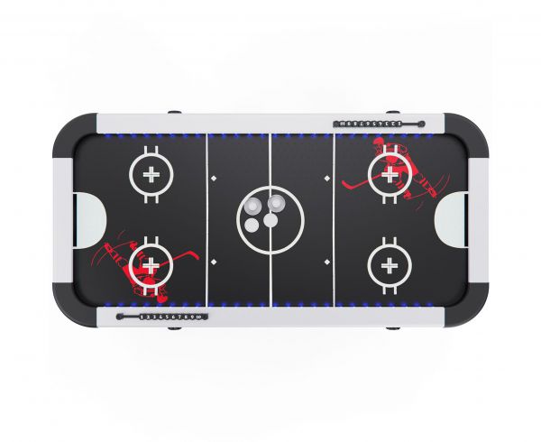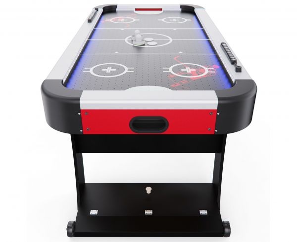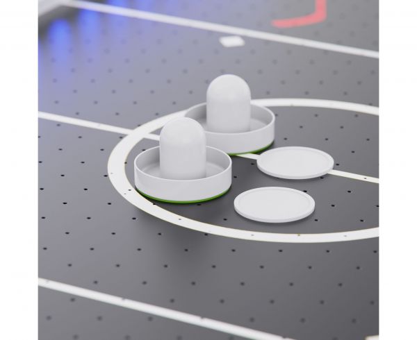 Встроенный вентилятор на 220В создает воздушный поток, который позволяет шайбе легко и быстро скользить по поверхности. Это делает игру максимально реалистичной и динамичной. Эффектная подсветка игрового стола создает атмосферу настоящего аркадного зала и делает игру еще более захватывающей, особенно в темное время суток.