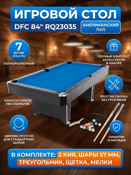 Игровой стол - бильярд DFC 84" RQ23035 - ДоставкаДоставка по Санкт-Петербургу: бесплатно, 2-3 дня Доставка по России: стоимость уточняйте у оператора. Игровой стол - бильярд DFC 84" RQ23035 - Отзывы0.0