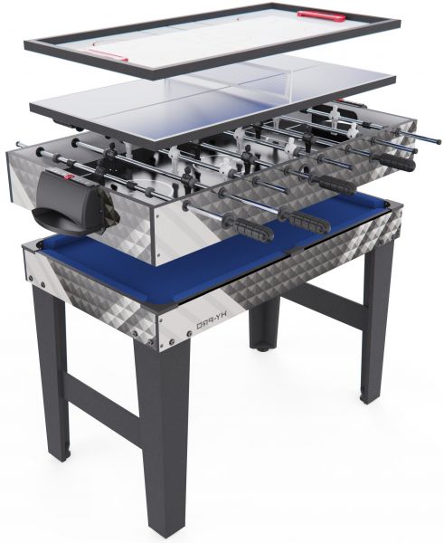 Игровой стол - трансформер 48" 4 в 1 DFC HP03102 - ОписаниеИгровой стол – трансформер 4 в 1 DFC HP03102 — это универсальное решение для домашнего использования, объединяющее сразу несколько популярных настольных игр. Он обеспечивает активный досуг, подходит для всей семьи и помогает весело проводить время в компании друзей.