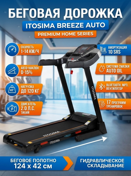 Беговая дорожка для дома Itosima Breeze Auto - ДоставкаДоставка по Санкт-Петербургу: бесплатно, 2-3 дня Доставка по России: стоимость уточняйте у оператора. Беговая дорожка для дома Itosima Breeze Auto - Отзывы0.0
