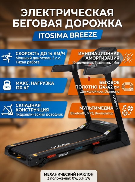 Беговая дорожка Itosima Breeze - ДоставкаДоставка по Санкт-Петербургу: бесплатно, 2-3 дня Доставка по России: стоимость уточняйте у оператора. Беговая дорожка Itosima Breeze - Отзывы0.0