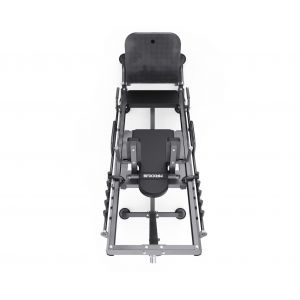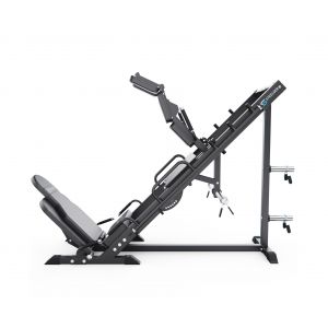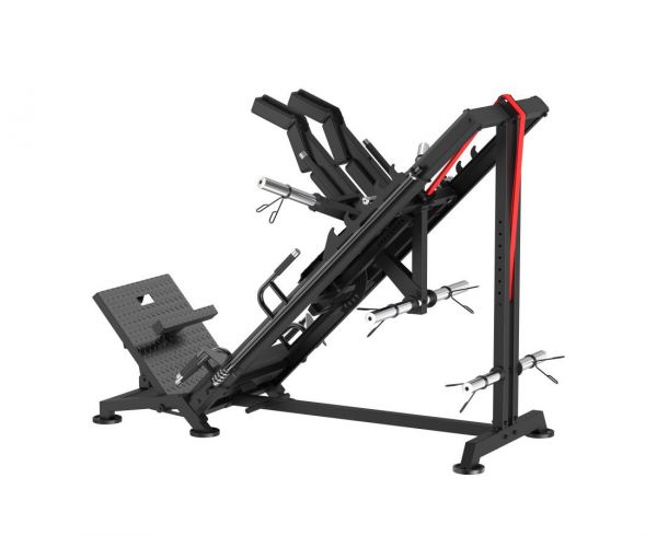 Максимальная допустимая нагрузка составляет до 360 кг. Угол наклона платформы регулируется в пределах 130–150°, а спинка на 4 уровня. Платформа для ног выполнена из рифлёного материала толщиной 3,2 мм, что предотвращает скольжение и обеспечивает безопасность при выполнении упражнений. Конструкция также предусматривает возможность отталкиваться ногами снизу вверх, расширяя вариативность тренировок.