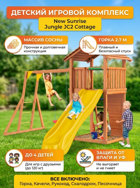 Детский игровой комплекс New Sunrise Jungle Cottage JC2 - БрендСтрана бренда: Россия Страна производства: Россия Премиальность бренда:Посмотреть все детские игровые комплексы для дачи New Sunrise (40) Детский игровой комплекс New Sunrise Jungle Cottage JC2 - Характеристики