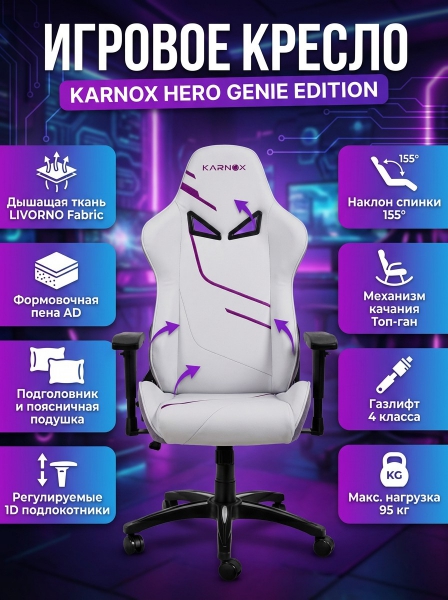 Премиум игровое кресло тканевое Karnox Нero Genie Edition - ДоставкаДоставка по Санкт-Петербургу: бесплатно, 2-3 дня Доставка по России: стоимость уточняйте у оператора. Премиум игровое кресло тканевое Karnox Нero Genie Edition - Отзывы0.0