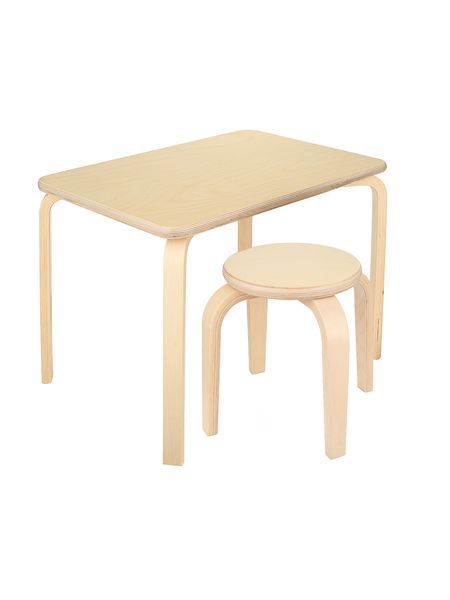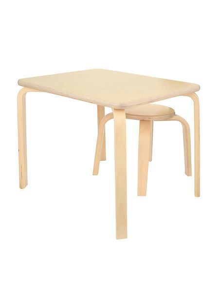 Стол с прямоугольной столешницей 44x60 см с комфортом разместит все необходимые для занятий предметы. Все поверхности идеально отшлифованы и покрыты экологически чистым водным лаком с восковым эффектом для дерева, который не содержит вредных веществ и растворителей. Стул изготовлен из экспортной березовой фанеры.