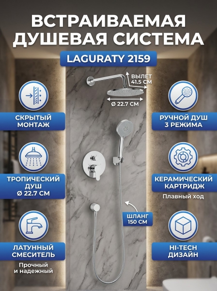 Душевая система встраиваемая Laguraty 2159 хром - Преимущества