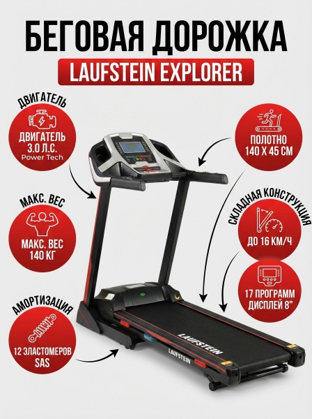 Беговая дорожка Laufstein Explorer - ДоставкаДоставка по Санкт-Петербургу: бесплатно, 2-3 дня Доставка по России: стоимость уточняйте у оператора. Беговая дорожка Laufstein Explorer - Отзывы5.0