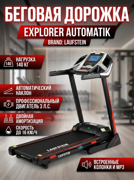 Беговая дорожка Laufstein Explorer Automatik - ДоставкаДоставка по Санкт-Петербургу: бесплатно, 2-3 дня Доставка по России: стоимость уточняйте у оператора. Беговая дорожка Laufstein Explorer Automatik - Отзывы0.0