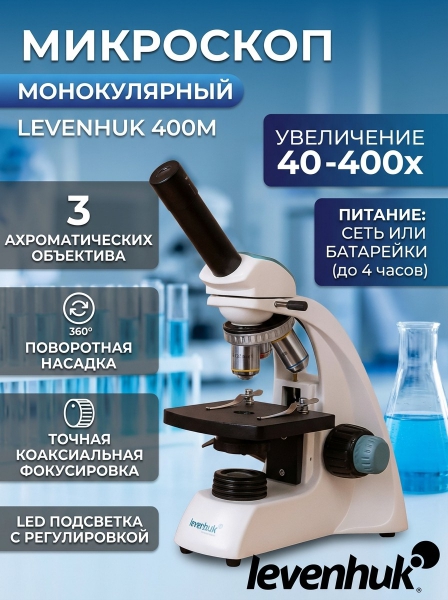 Микроскоп монокулярный Levenhuk 400M - ДоставкаДоставка по Санкт-Петербургу: бесплатно, 2-3 дня Доставка по России: стоимость уточняйте у оператора. Микроскоп монокулярный Levenhuk 400M - Отзывы0.0