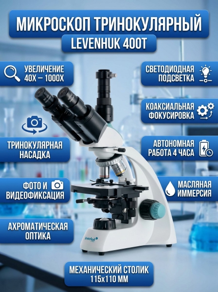 Микроскоп тринокулярный Levenhuk 400T - ДоставкаДоставка по Санкт-Петербургу: бесплатно, 2-3 дня Доставка по России: стоимость уточняйте у оператора. Микроскоп тринокулярный Levenhuk 400T - Отзывы0.0