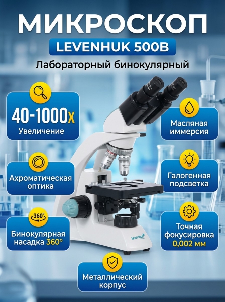 Микроскоп бинокулярный Levenhuk 500B - ДоставкаДоставка по Санкт-Петербургу: бесплатно, 2-3 дня Доставка по России: стоимость уточняйте у оператора. Микроскоп бинокулярный Levenhuk 500B - Отзывы0.0