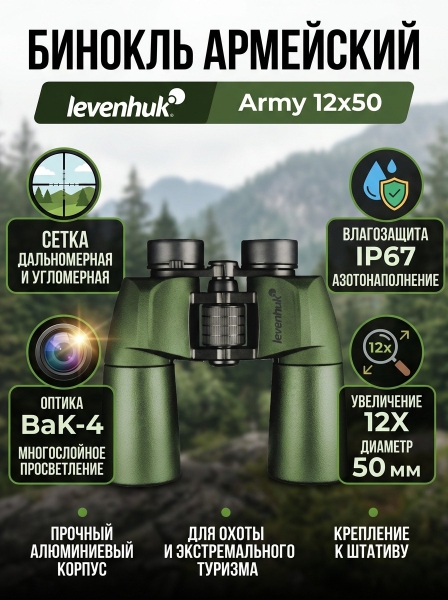 Бинокль Levenhuk Army 12x50 с сеткой - БрендСтрана бренда: США Премиальность бренда:Бинокль Levenhuk Army 12x50 с сеткой - Характеристики