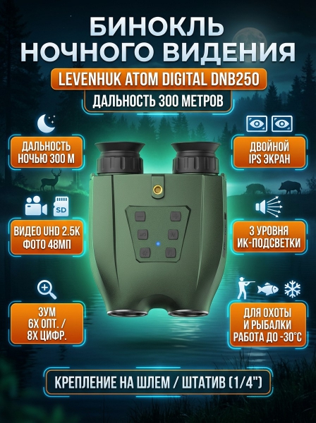 Бинокль ночного видения Levenhuk Atom Digital DNB250 - ДоставкаДоставка по Санкт-Петербургу: бесплатно, 2-3 дня Доставка по России: стоимость уточняйте у оператора. Бинокль ночного видения Levenhuk Atom Digital DNB250 - Отзывы0.0