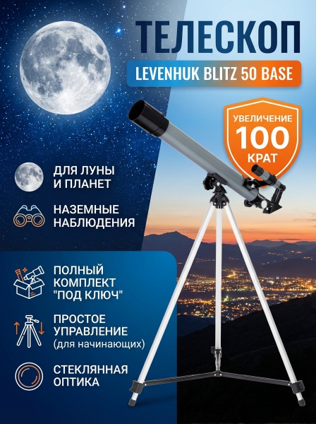 Телескоп рефракторный Levenhuk Blitz 50 BASE - ДоставкаДоставка по Санкт-Петербургу: 795 ₽, 2-3 дня Доставка по России: стоимость уточняйте у оператора. Телескоп рефракторный Levenhuk Blitz 50 BASE - Отзывы0.0