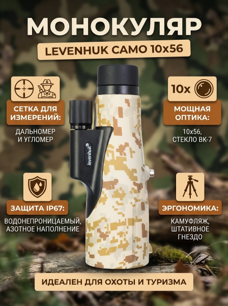Монокуляр с сеткой Levenhuk Camo 10x56 бежевый - ДоставкаДоставка по Санкт-Петербургу: бесплатно, 2-3 дня Доставка по России: стоимость уточняйте у оператора. Монокуляр с сеткой Levenhuk Camo 10x56 бежевый - Отзывы0.0