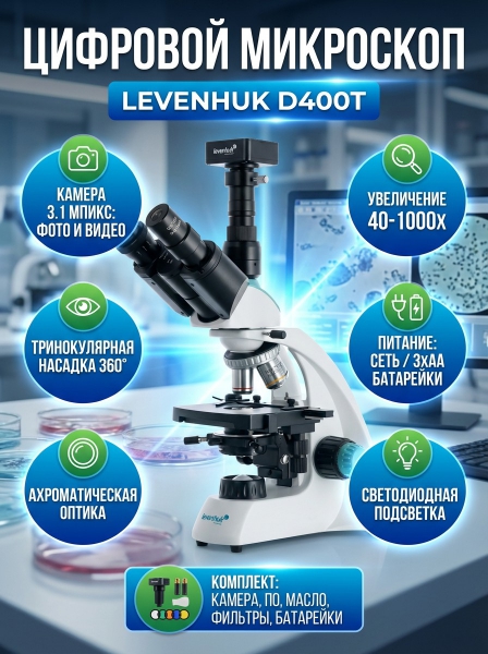 Микроскоп цифровой тринокулярный Levenhuk D400T 3.1 Мпикс - ДоставкаДоставка по Санкт-Петербургу: бесплатно, 2-3 дня Доставка по России: стоимость уточняйте у оператора. Микроскоп цифровой тринокулярный Levenhuk D400T 3.1 Мпикс - Отзывы0.0