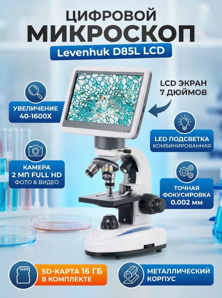 Микроскоп цифровой Levenhuk D85L LCD монокулярный - ДоставкаДоставка по Санкт-Петербургу: бесплатно, 2-3 дня Доставка по России: стоимость уточняйте у оператора. Микроскоп цифровой Levenhuk D85L LCD монокулярный - Отзывы0.0