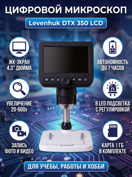 Микроскоп цифровой Levenhuk DTX 350 LCD - ДоставкаДоставка по Санкт-Петербургу: бесплатно, 2-3 дня Доставка по России: стоимость уточняйте у оператора. Микроскоп цифровой Levenhuk DTX 350 LCD - Отзывы0.0