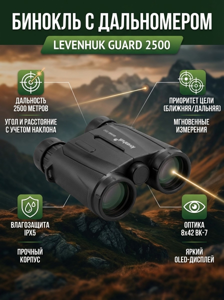 Бинокль с дальномером Levenhuk Guard 2500 - ДоставкаДоставка по Санкт-Петербургу: бесплатно, 2-3 дня Доставка по России: стоимость уточняйте у оператора. Бинокль с дальномером Levenhuk Guard 2500 - Отзывы0.0