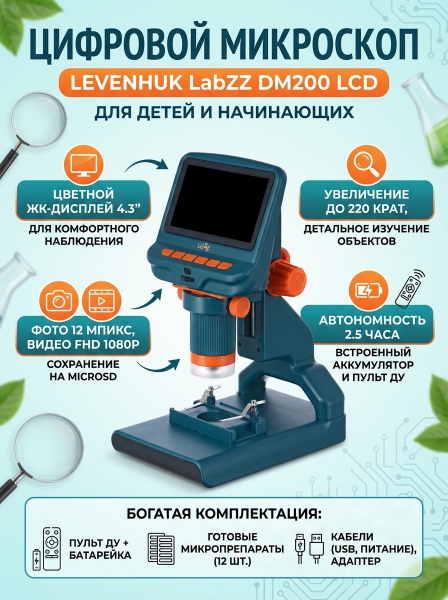 Микроскоп цифровой Levenhuk LabZZ DM200 LCD - ДоставкаДоставка по Санкт-Петербургу: бесплатно, 2-3 дня Доставка по России: стоимость уточняйте у оператора. Микроскоп цифровой Levenhuk LabZZ DM200 LCD - Отзывы0.0