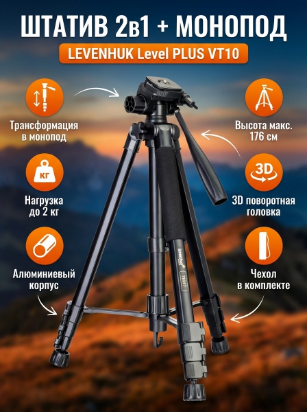 Штатив Levenhuk Level PLUS VT10 - Преимущества