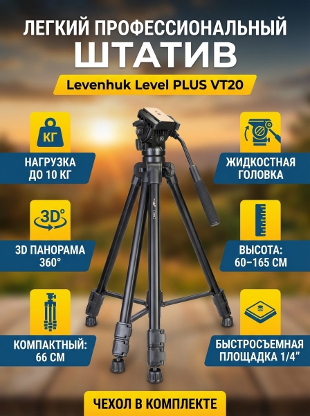Штатив Levenhuk Level PLUS VT20 - ДоставкаДоставка по Санкт-Петербургу: бесплатно, 2-3 дня Доставка по России: стоимость уточняйте у оператора. Штатив Levenhuk Level PLUS VT20 - Отзывы0.0