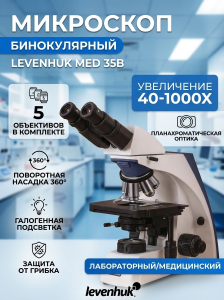 Микроскоп бинокулярный Levenhuk MED 35B - ДоставкаДоставка по Санкт-Петербургу: бесплатно, 2-3 дня Доставка по России: стоимость уточняйте у оператора. Микроскоп бинокулярный Levenhuk MED 35B - Отзывы0.0
