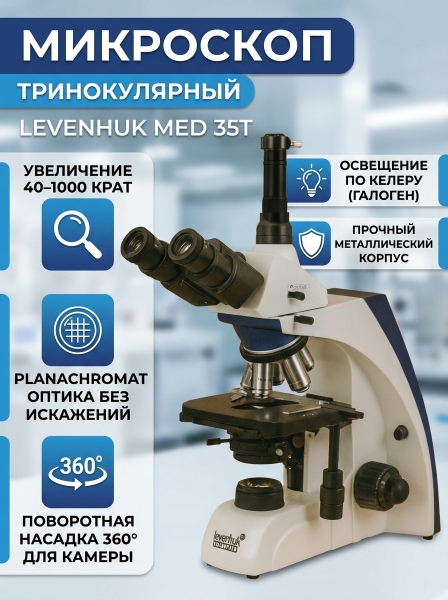 Микроскоп тринокулярный Levenhuk MED 35T - ДоставкаДоставка по Санкт-Петербургу: бесплатно, 2-3 дня Доставка по России: стоимость уточняйте у оператора. Микроскоп тринокулярный Levenhuk MED 35T - Отзывы0.0
