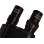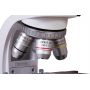 Визуальный блок насадки отклонен на 30-градусный угол, что уменьшает нагрузку на мышцы шеи при длительных наблюдениях. Отдельная окулярная трубка, в которую устанавливается цифровая камера, расположена вертикально. Есть делитель светового потока. Всю конструкцию насадки можно вращать на 360°. Оптическая система включает широкопольные окуляры и полупланахроматические объективы. Первые дают 10-кратное увеличение, а вторые выравнивают поле зрения и уменьшают хроматизм. У окуляров есть диоптрийная коррекция, у 40-кратного и 100-кратного объективов – пружинящие оправы. Оптика аксессуаров защищена антигрибковым покрытием. Есть регулировка резкости – грубая и точная.