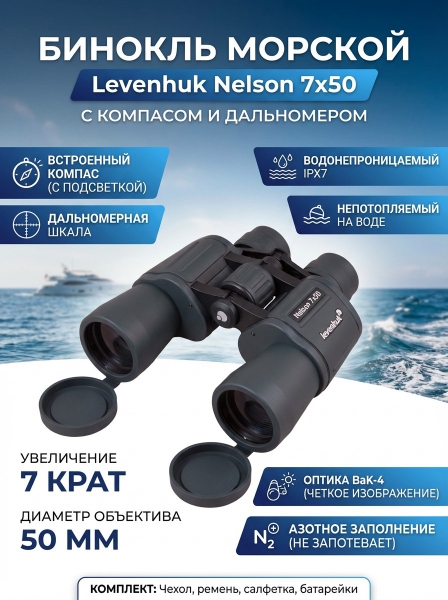 Морской бинокль Levenhuk Nelson 7x50 - ДоставкаДоставка по Санкт-Петербургу: бесплатно, 2-3 дня Доставка по России: стоимость уточняйте у оператора. Морской бинокль Levenhuk Nelson 7x50 - Отзывы0.0