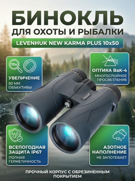 Бинокль для охоты и рыбалки Levenhuk New Karma PLUS 10x50 - ДоставкаДоставка по Санкт-Петербургу: бесплатно, 2-3 дня Доставка по России: стоимость уточняйте у оператора. Бинокль для охоты и рыбалки Levenhuk New Karma PLUS 10x50 - Отзывы0.0