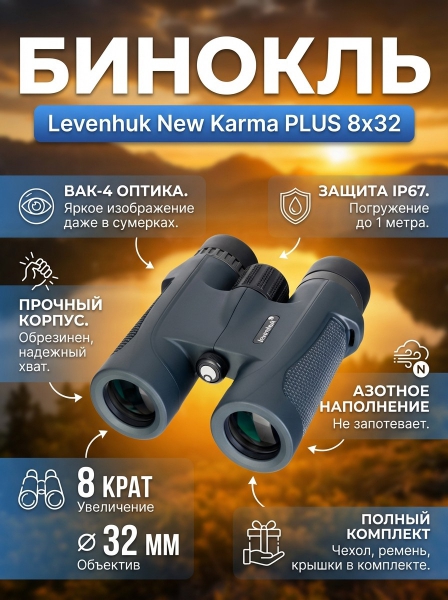 Бинокль Levenhuk New Karma PLUS 8x32 - ДоставкаДоставка по Санкт-Петербургу: бесплатно, 2-3 дня Доставка по России: стоимость уточняйте у оператора. Бинокль Levenhuk New Karma PLUS 8x32 - Отзывы0.0