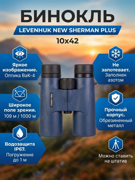 Бинокль Levenhuk New Sherman PLUS 10x42 - ДоставкаДоставка по Санкт-Петербургу: бесплатно, 2-3 дня Доставка по России: стоимость уточняйте у оператора. Бинокль Levenhuk New Sherman PLUS 10x42 - Отзывы0.0
