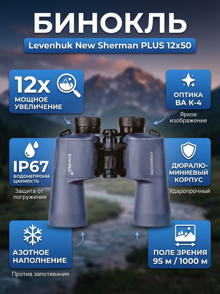 Levenhuk New Sherman PLUS 12x50 сочетает в себе мощные оптические характеристики, продуманную эргономику и отличную защиту от внешних факторов, что делает его прекрасным выбором для тех, кто ценит надежность и качество в самых разнообразных условиях. Этот бинокль гарантирует комфортные наблюдения, независимо от времени суток и погоды.