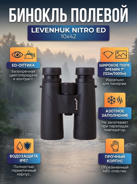 Бинокль полевой Levenhuk Nitro ED 10x42 - ДоставкаДоставка по Санкт-Петербургу: бесплатно, 2-3 дня Доставка по России: стоимость уточняйте у оператора. Бинокль полевой Levenhuk Nitro ED 10x42 - Отзывы0.0