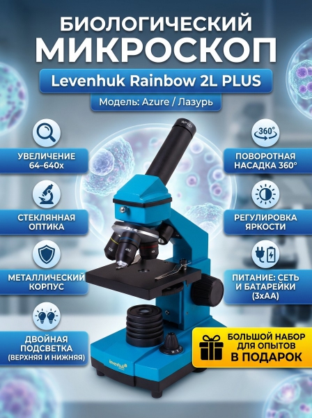 Микроскоп монокулярный Levenhuk Rainbow 2L PLUS Azure/Лазурь - ДоставкаДоставка по Санкт-Петербургу: бесплатно, 2-3 дня Доставка по России: стоимость уточняйте у оператора. Микроскоп монокулярный Levenhuk Rainbow 2L PLUS Azure/Лазурь - Отзывы0.0