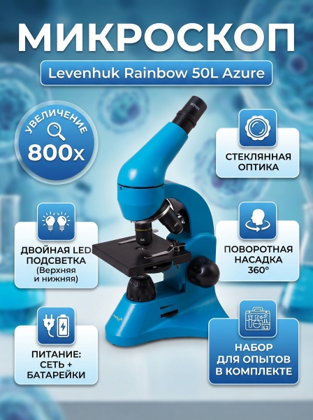 Микроскоп монокулярный Levenhuk Rainbow 50L Azure/Лазурь - ДоставкаДоставка по Санкт-Петербургу: бесплатно, 2-3 дня Доставка по России: стоимость уточняйте у оператора. Микроскоп монокулярный Levenhuk Rainbow 50L Azure/Лазурь - Отзывы0.0